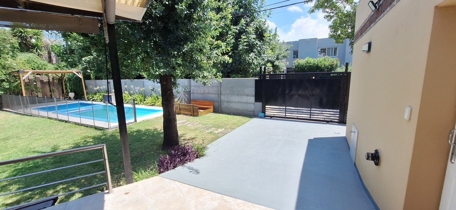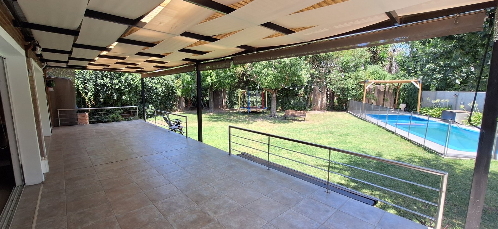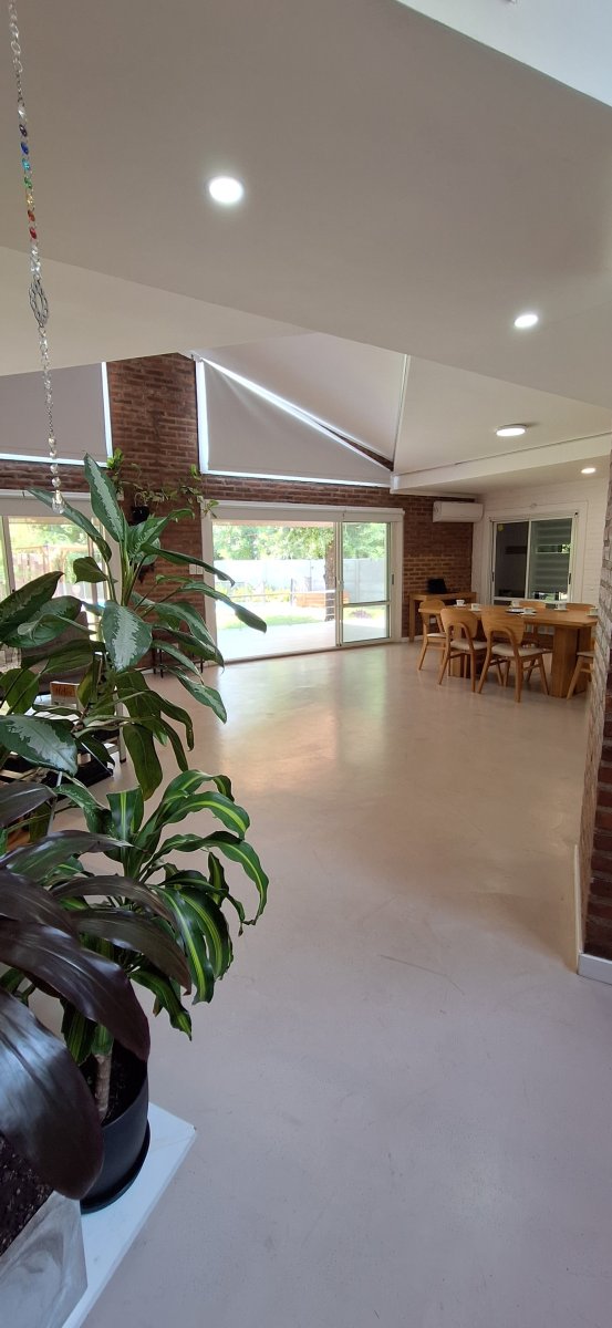 La vida social se disfruta en su gran galería techada con vistas al parque 🌿, ideal para reuniones y asados.